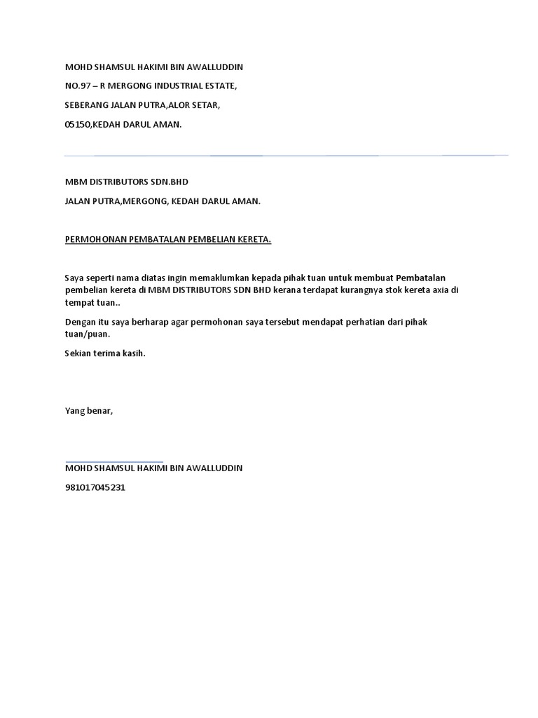 Contoh Surat Batal Pembelian Kereta Pdfcoffee Com